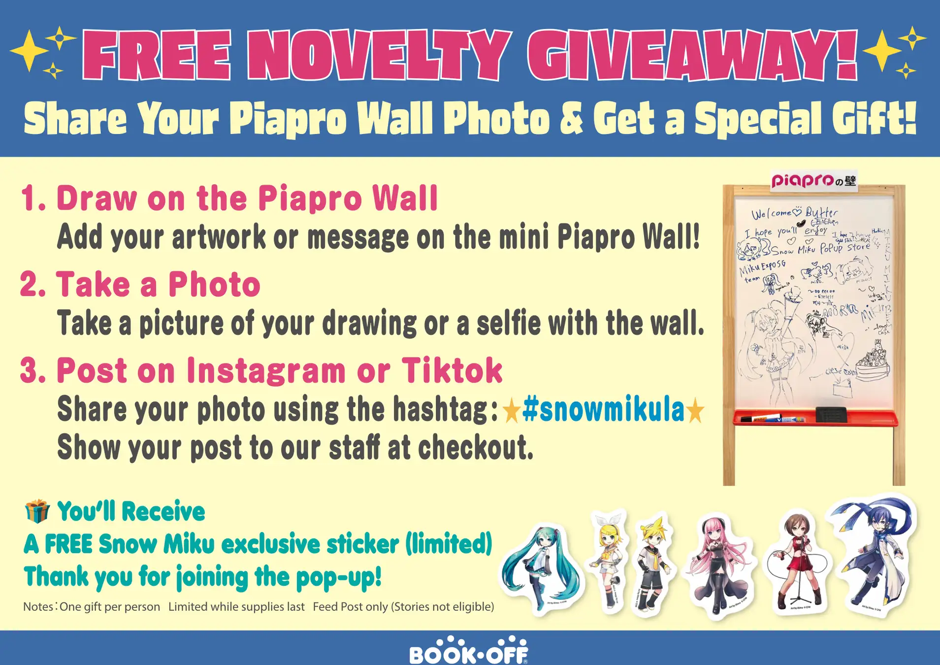 • 2025年11月〜12月:シンガポール COURTS Nojima The Heeren 内BOOKOFF POP-UPストアでの「雪ミク」限定ポップアップ