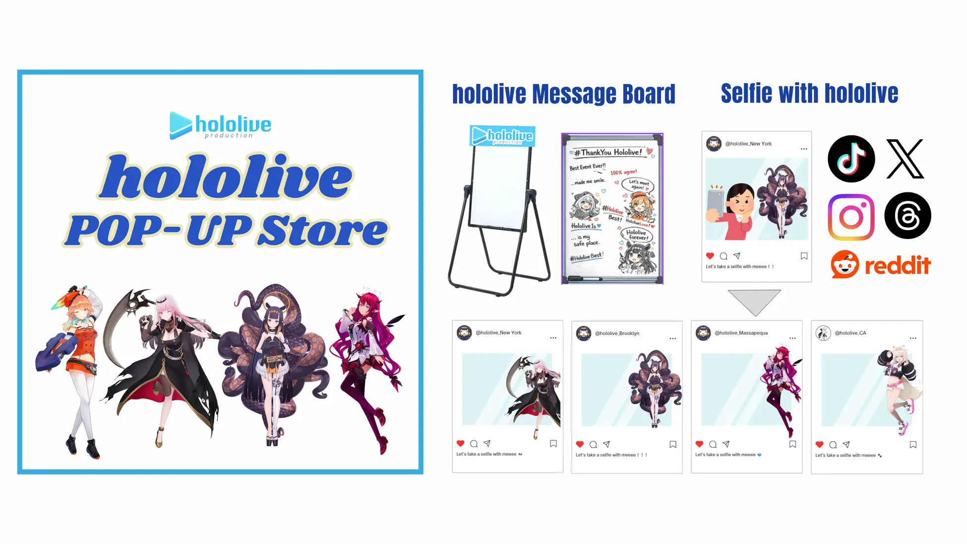 本企画では、ホロライブプロダクション 公式グッズの販売に加え、来場者が思わず写真を撮ってシェアしたくなる“体験型売り場”を実装し、ブランド体験価値の向上とSNS発信による認知拡大を狙います。
